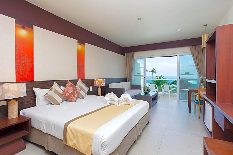 Spacious beachfront villa with a separate living room, DVD player and bathtub.